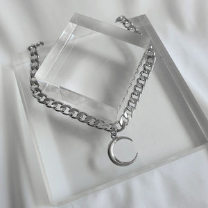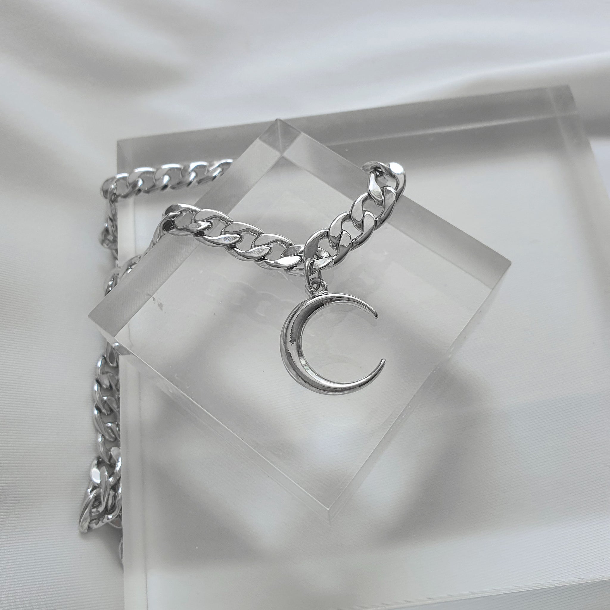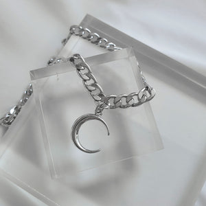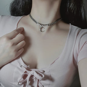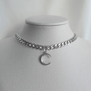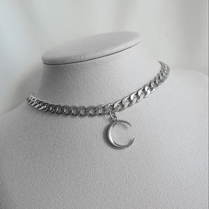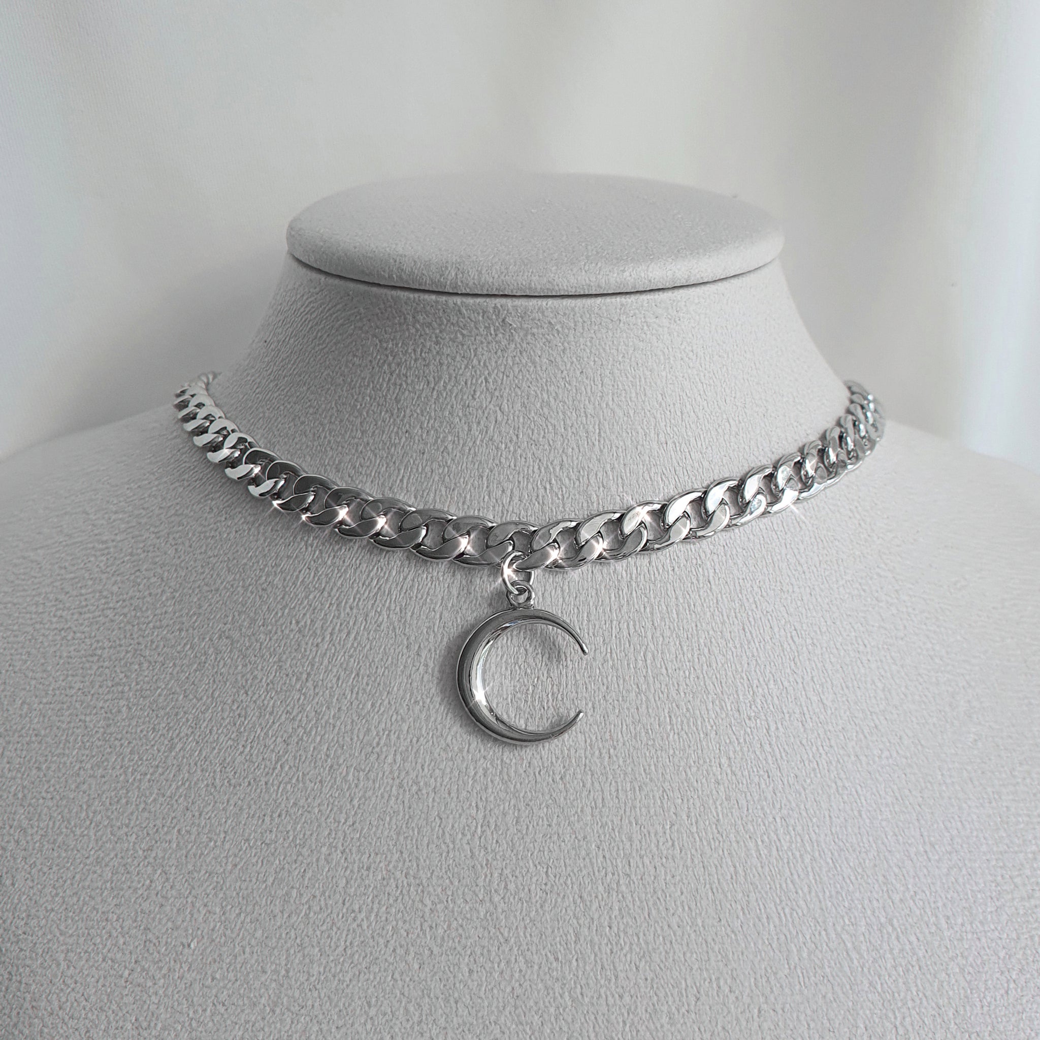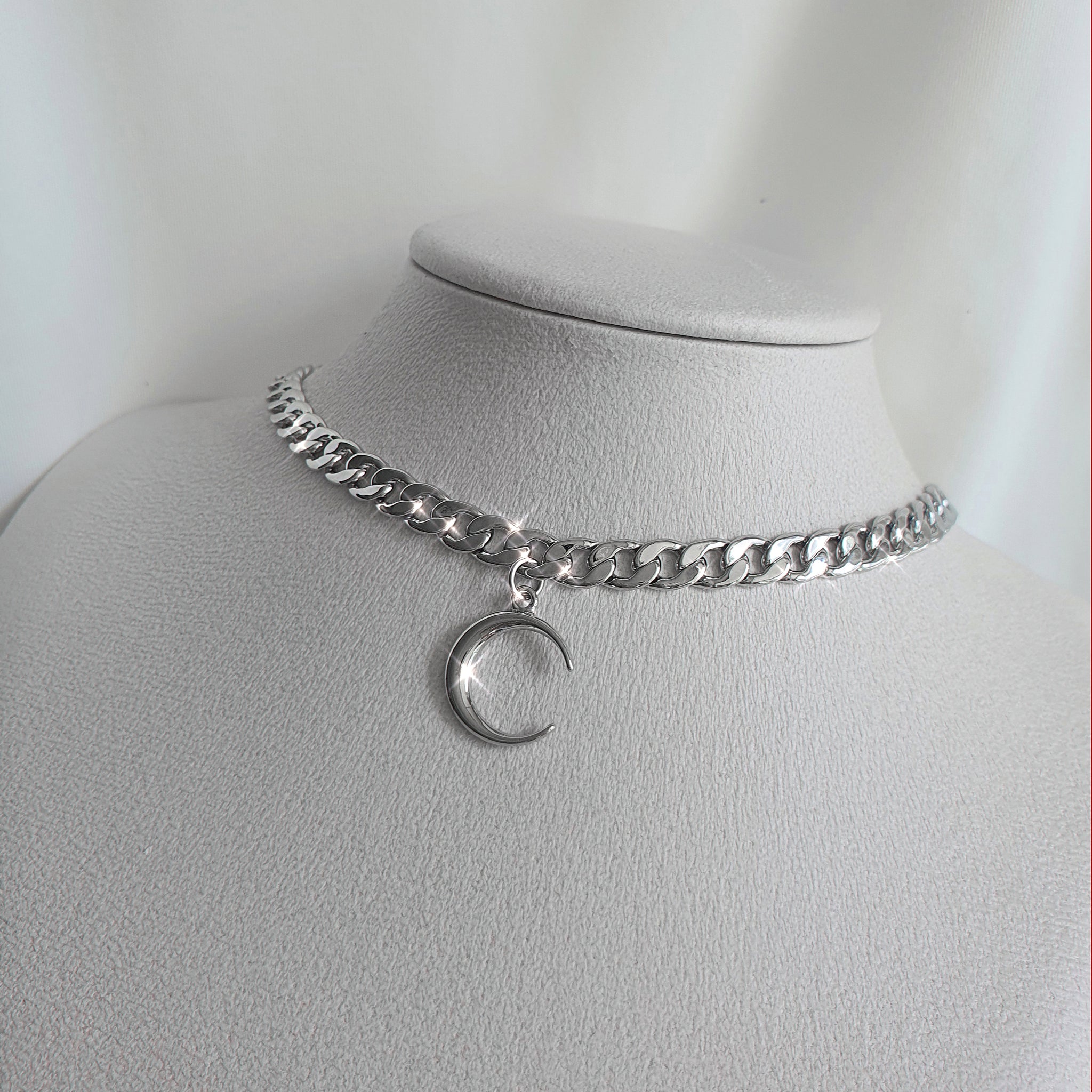 This choker necklace will compliment any cute gothic outfit with a magical girl vibe! Urban-chic bold chain strap necklace features silver crescent moon pendant.