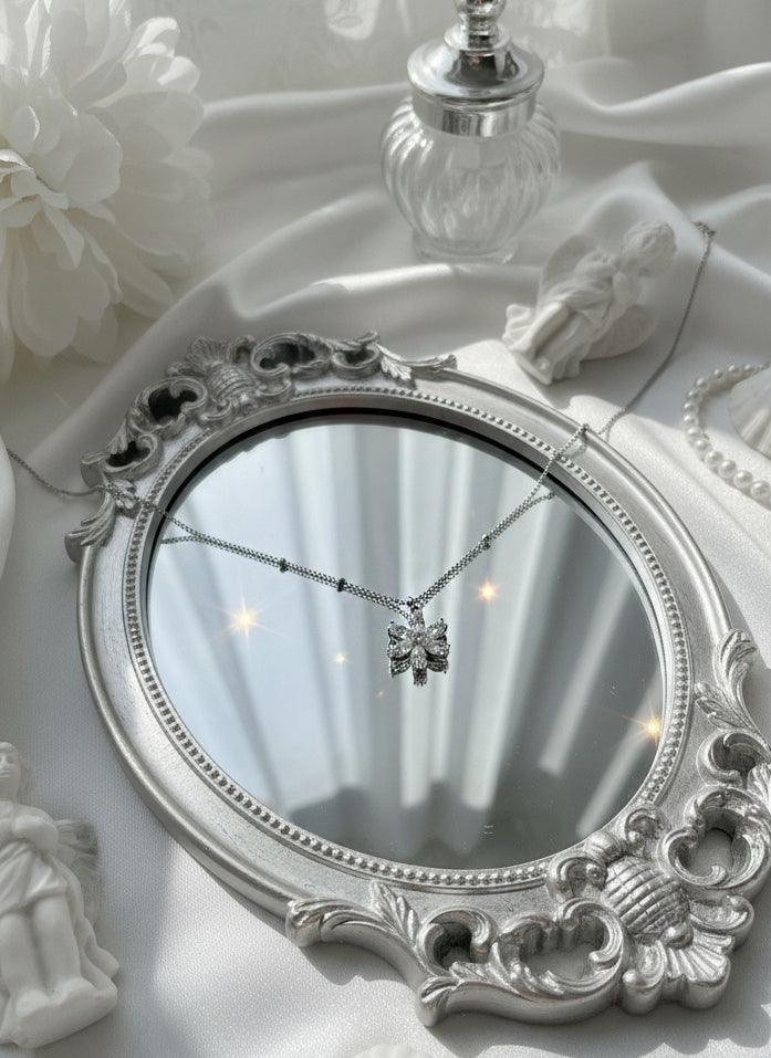 The necklace chain is finished with a high-quality Original Rhodium plating (3 mils thick), enabling it to resist tarnishing and maintain its shine over time.