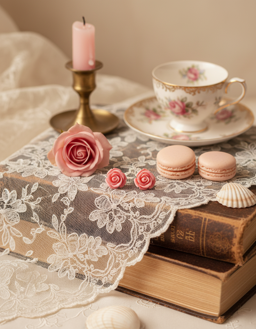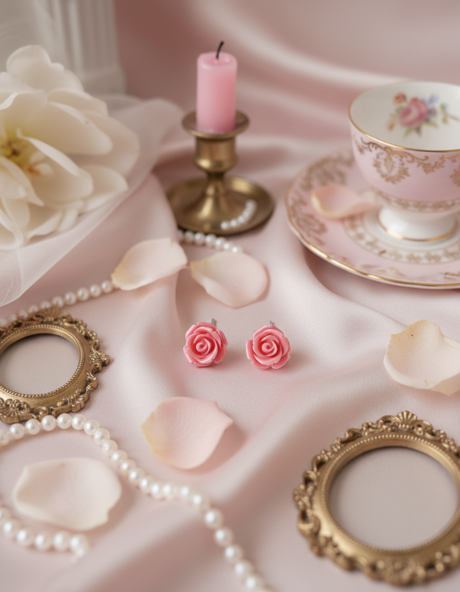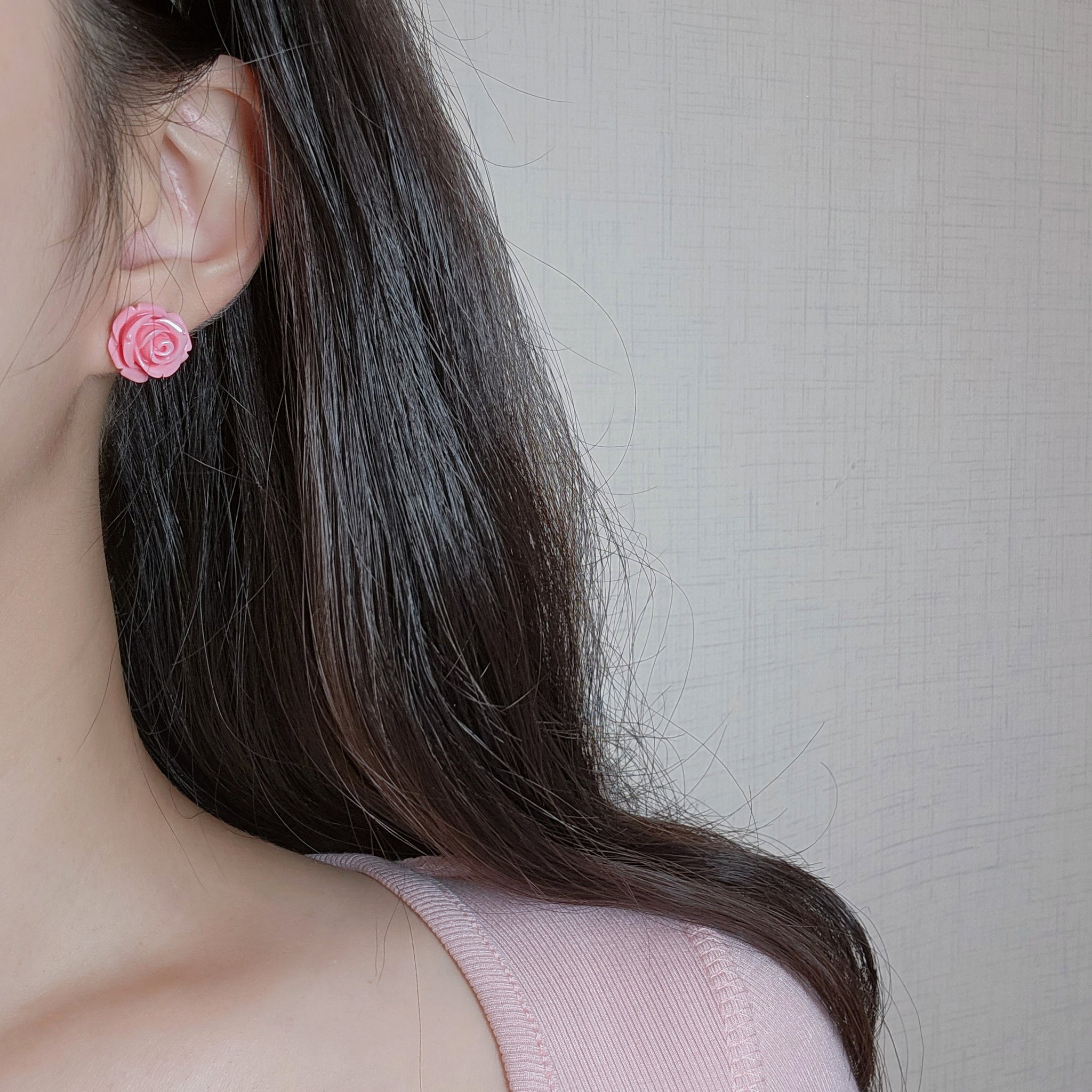 These daily stud earrings feature a beautifully vibrant pink rose cabochon. An exclusive design by aimelbie, this piece boasts a unique vintage-inspired charm. Perfect for adding a subtle touch of loveliness without going over the top.