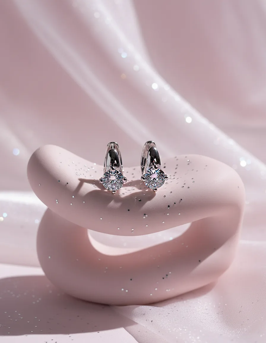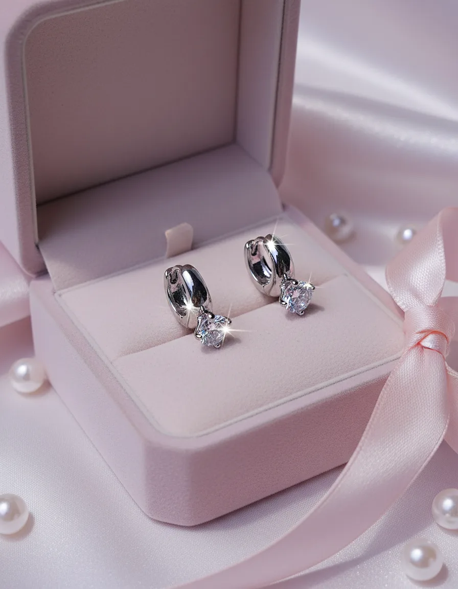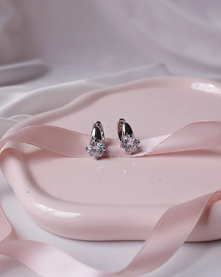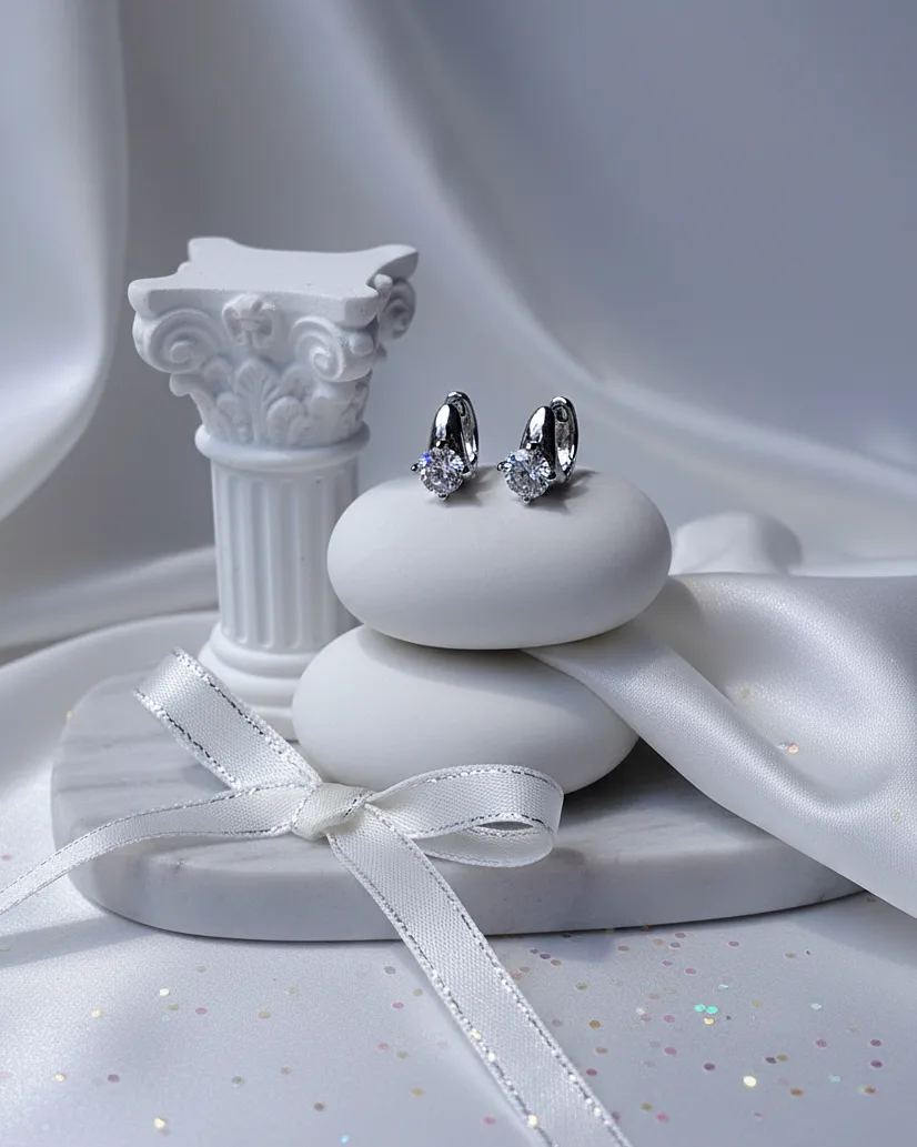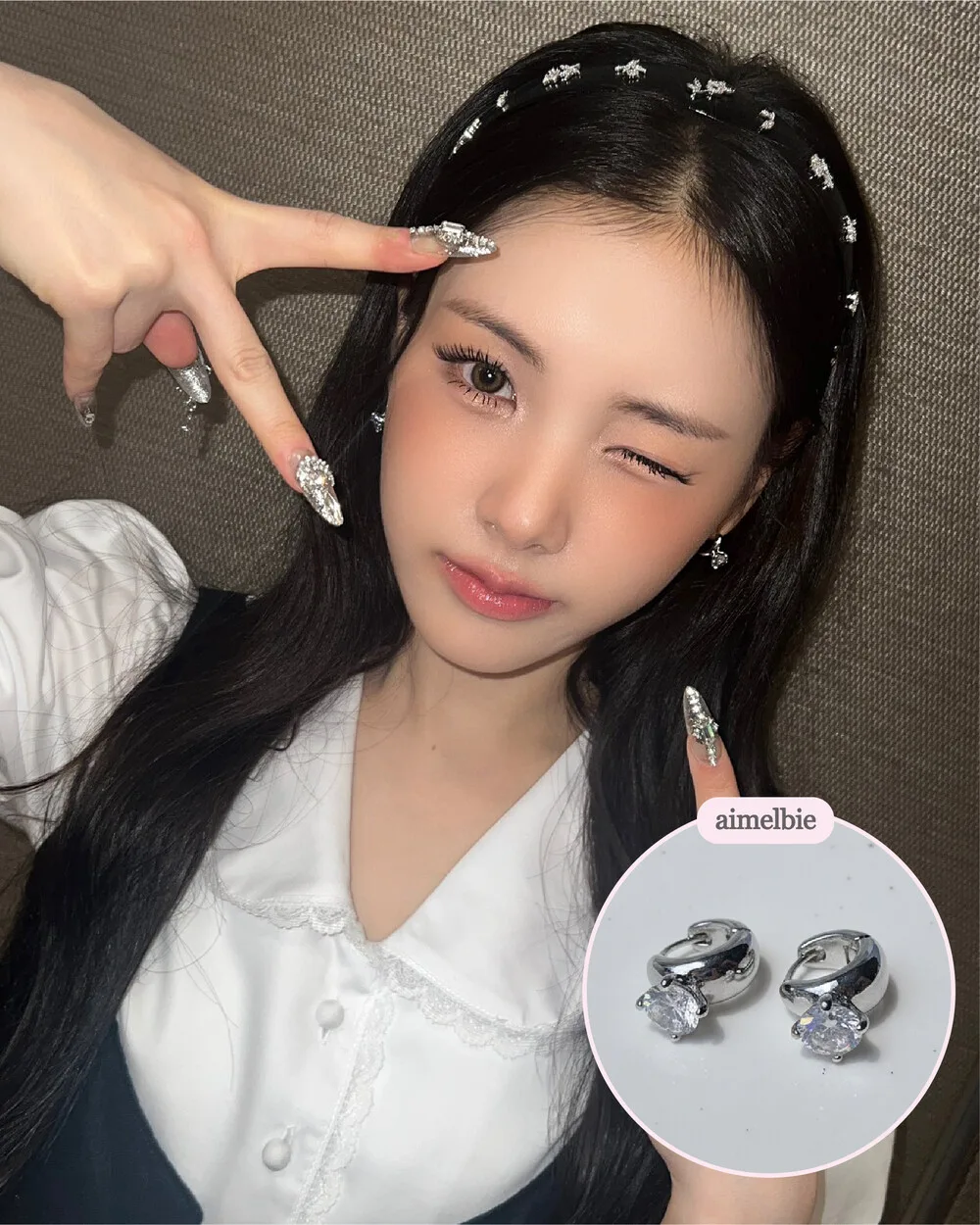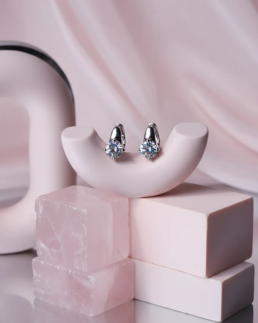 A bold-sized crystal set at the end of each smooth metallic ring catches the light with every movement, radiating brilliant sparkle that beautifully illuminates your face.