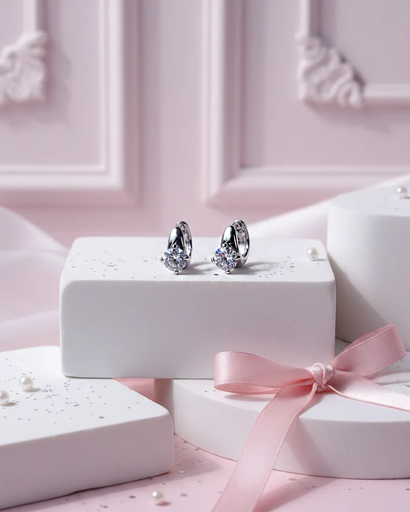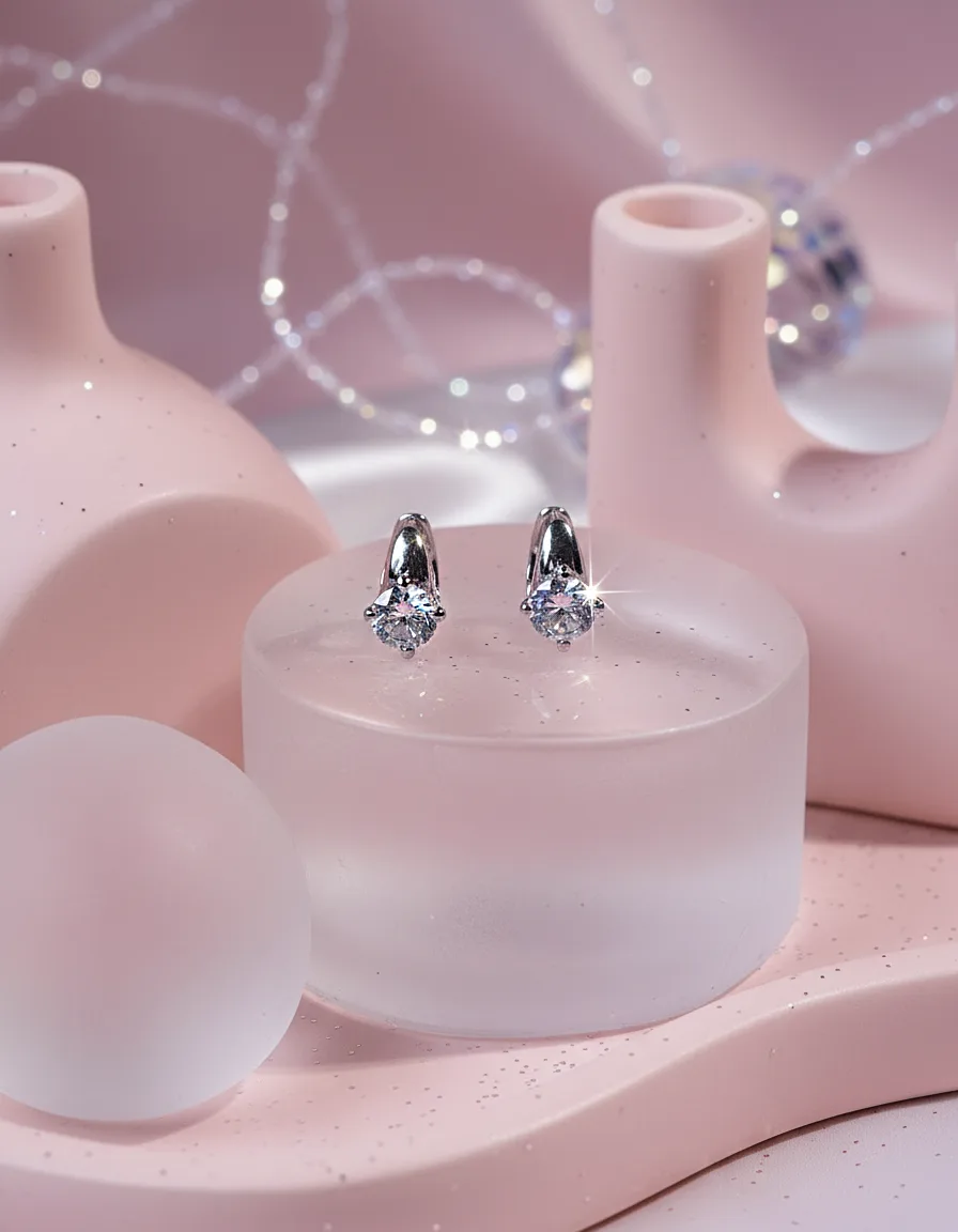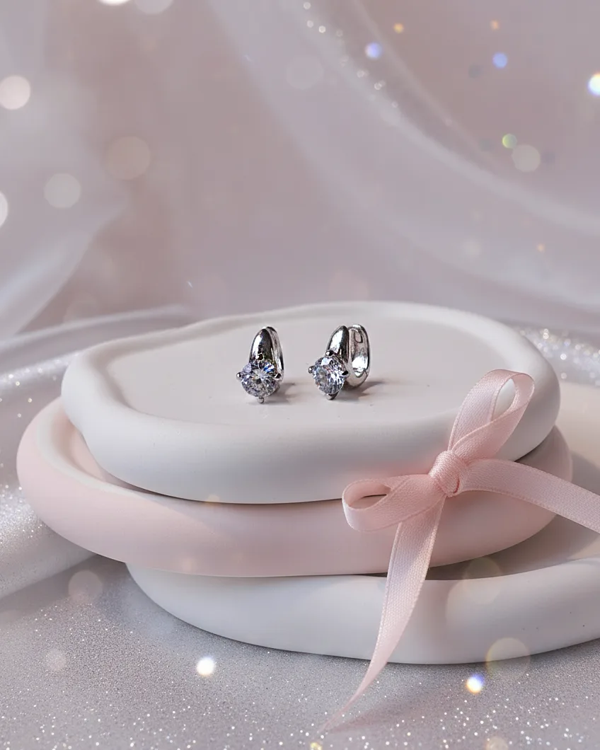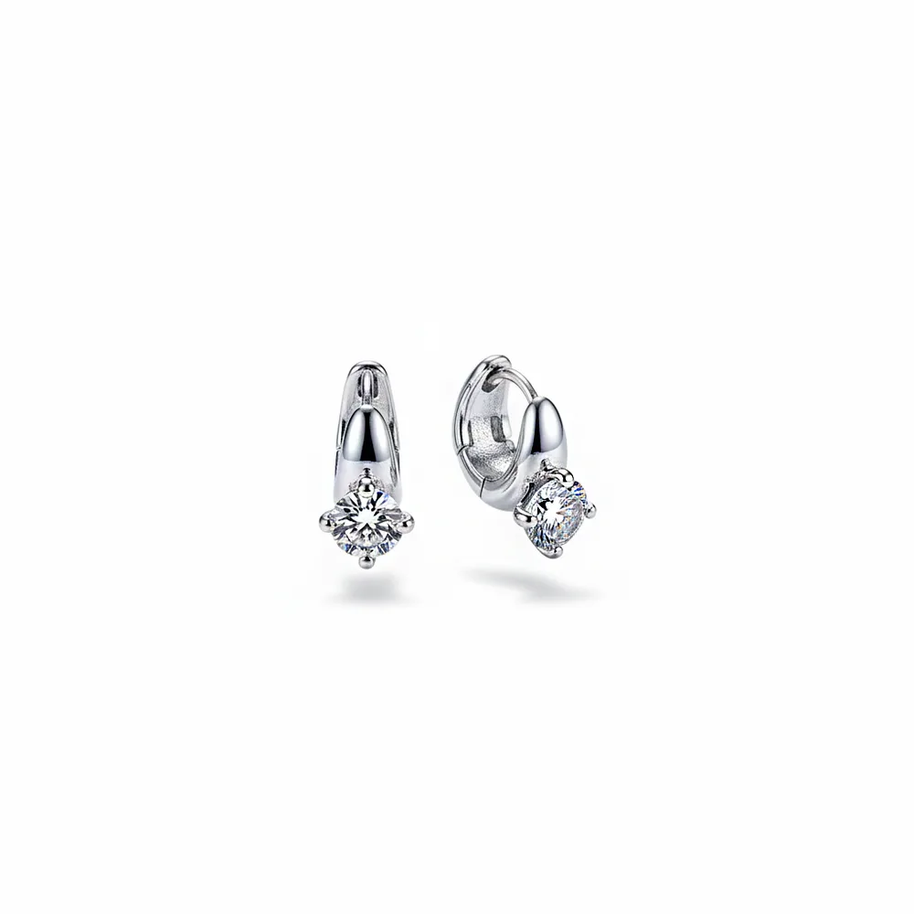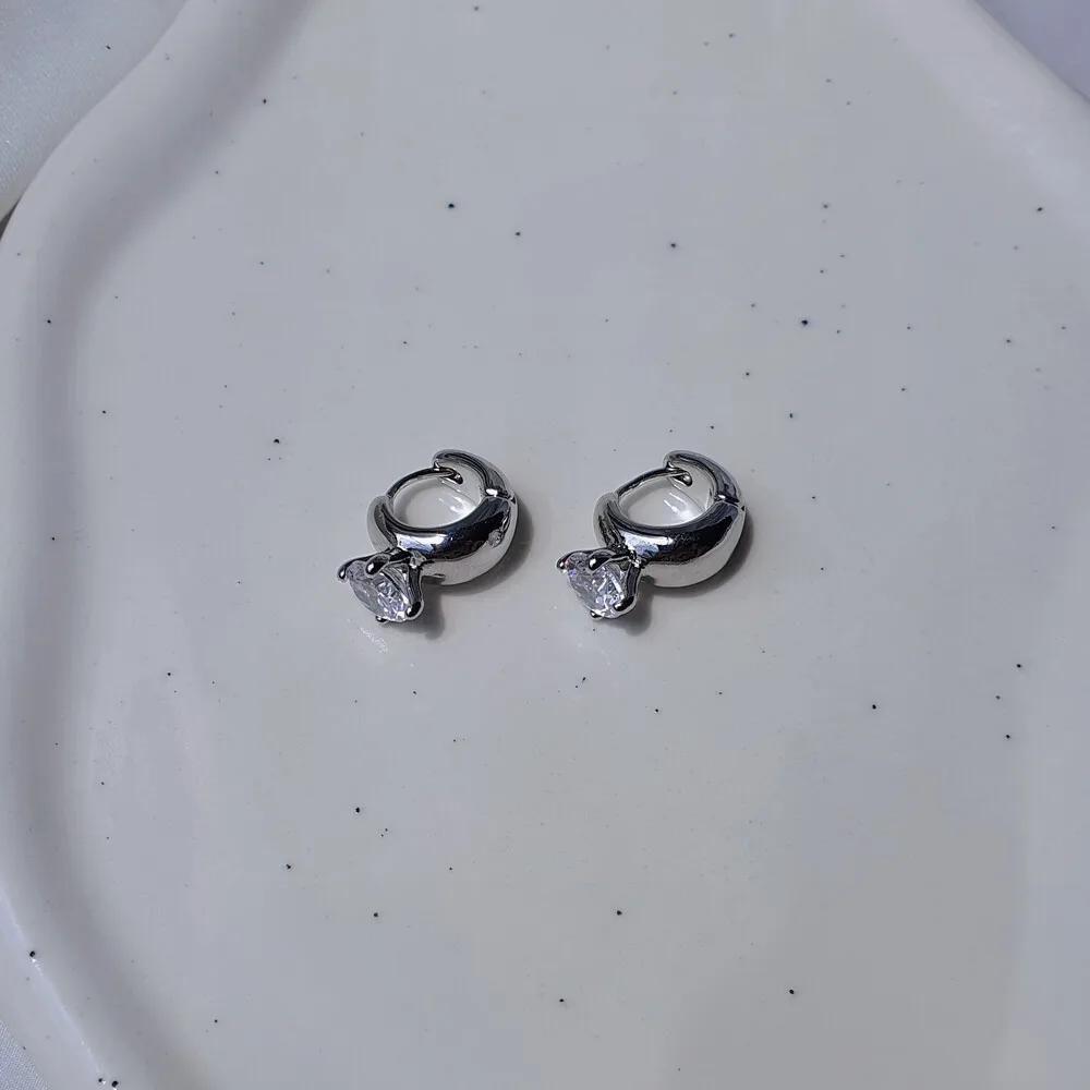 A bold-sized crystal set at the end of each smooth metallic ring catches the light with every movement, radiating brilliant sparkle that beautifully illuminates your face.