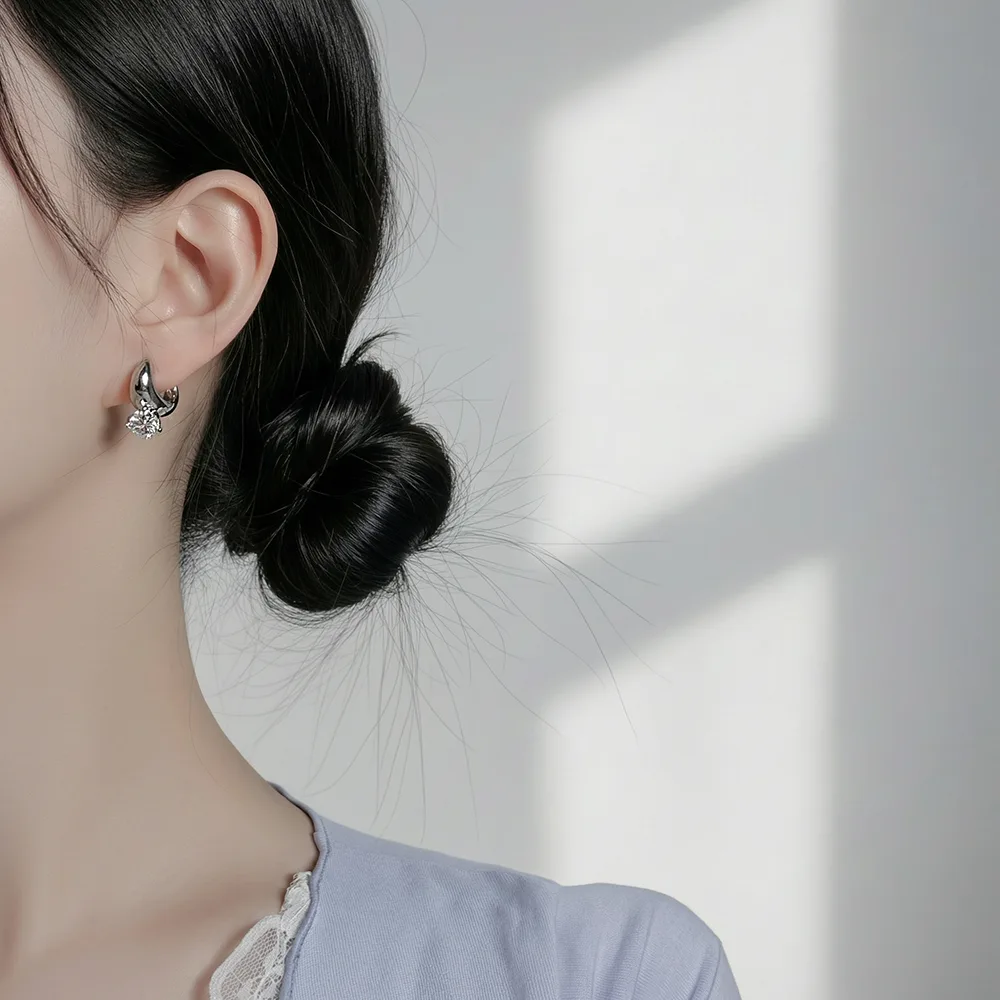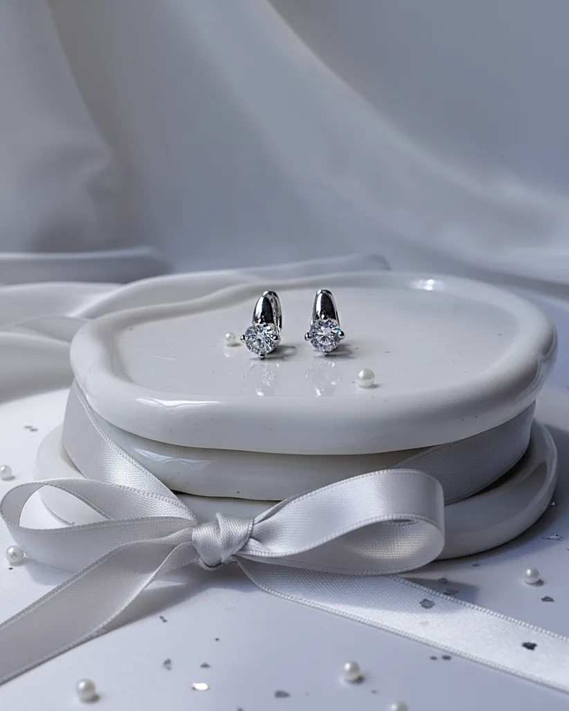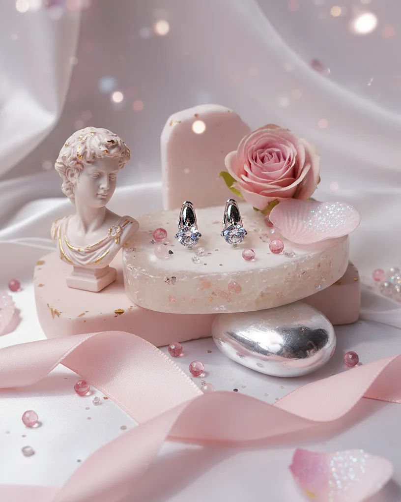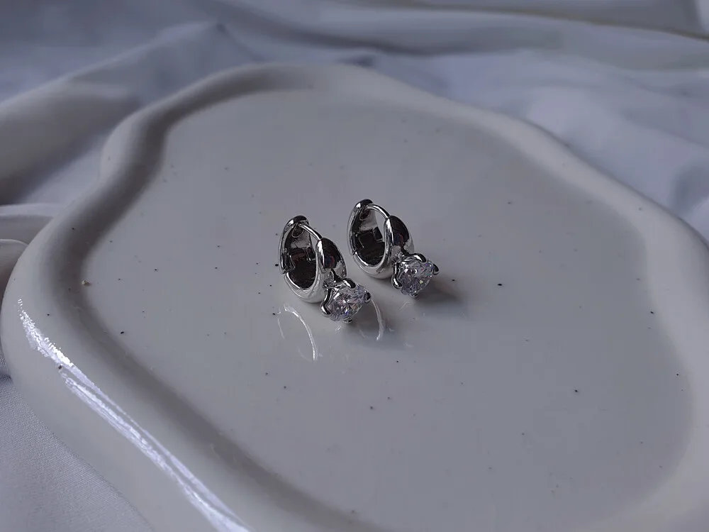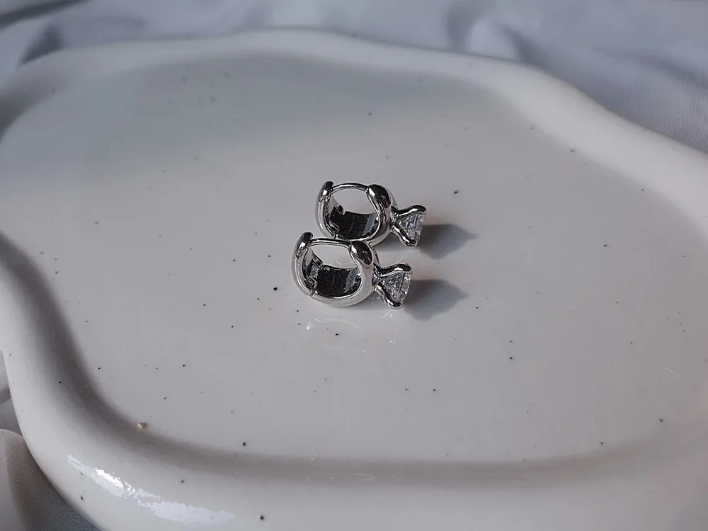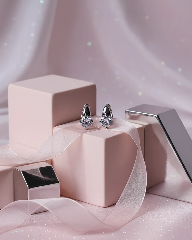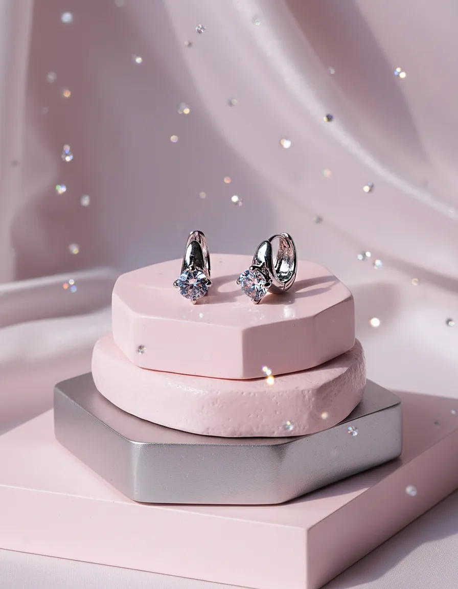 A bold-sized crystal set at the end of each smooth metallic ring catches the light with every movement, radiating brilliant sparkle that beautifully illuminates your face.