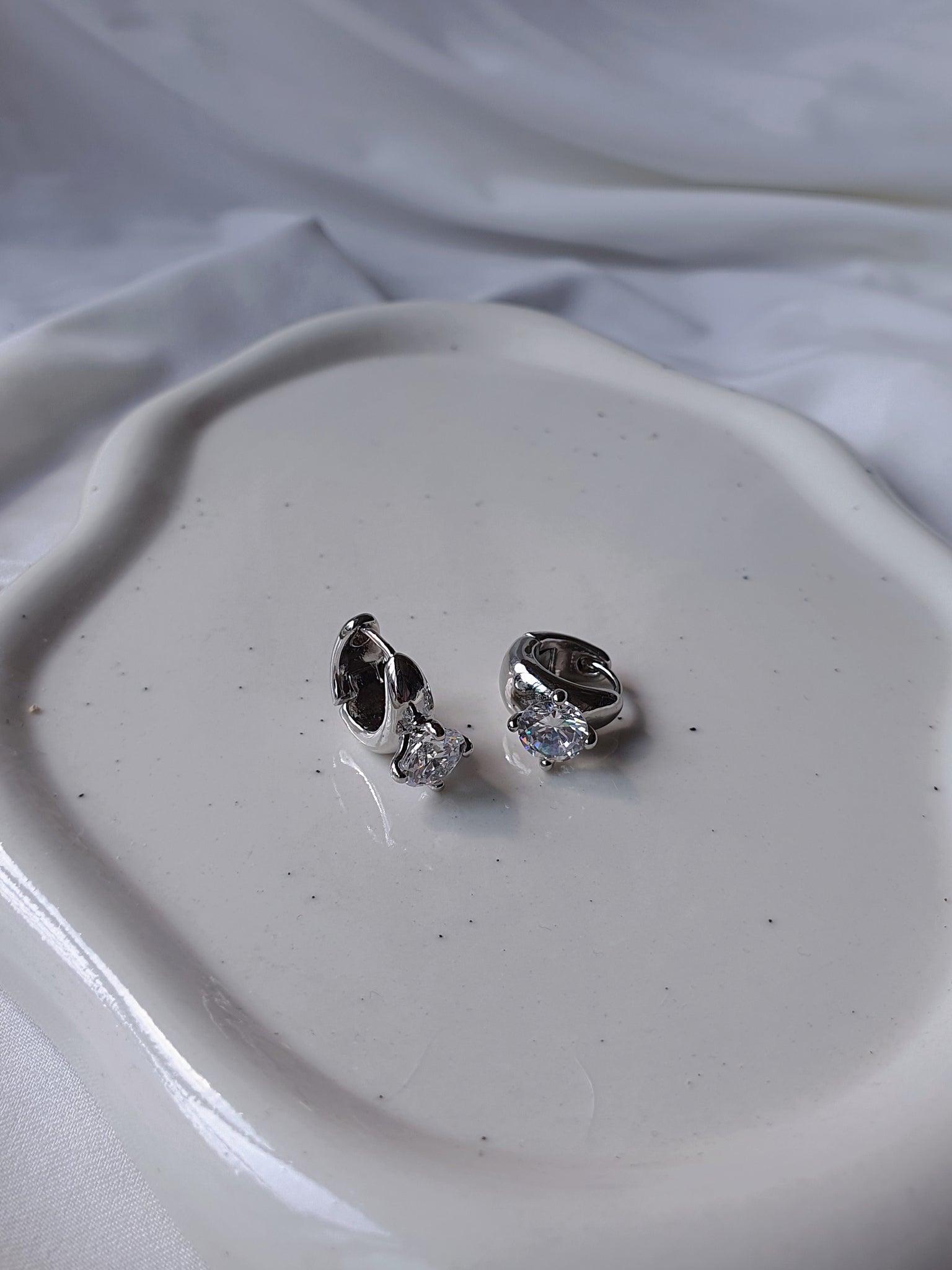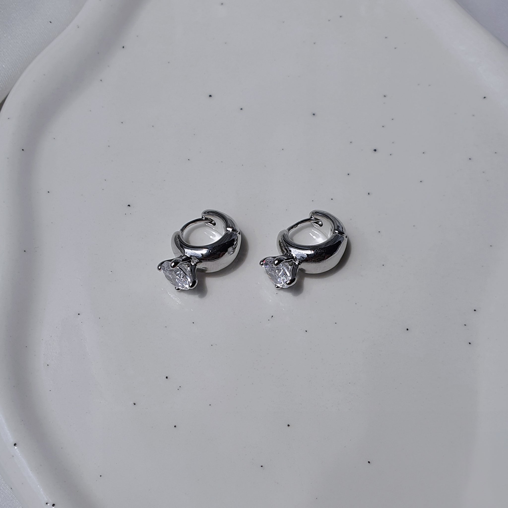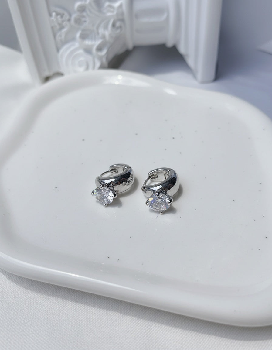 These chunky hoop earrings feature a bold cubic zirconia stone that gives the appearance of a diamond ring. The sleek and modern design makes them effortlessly versatile for any outfit.