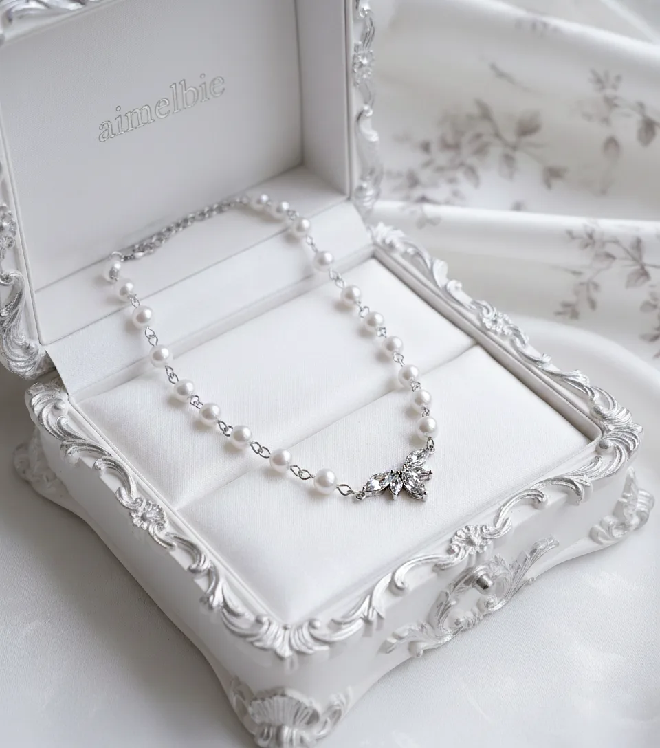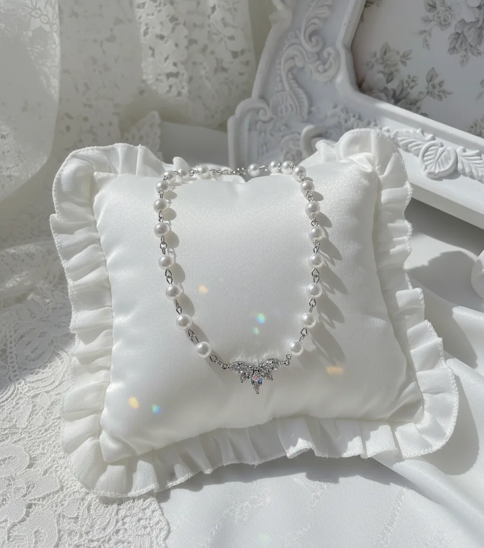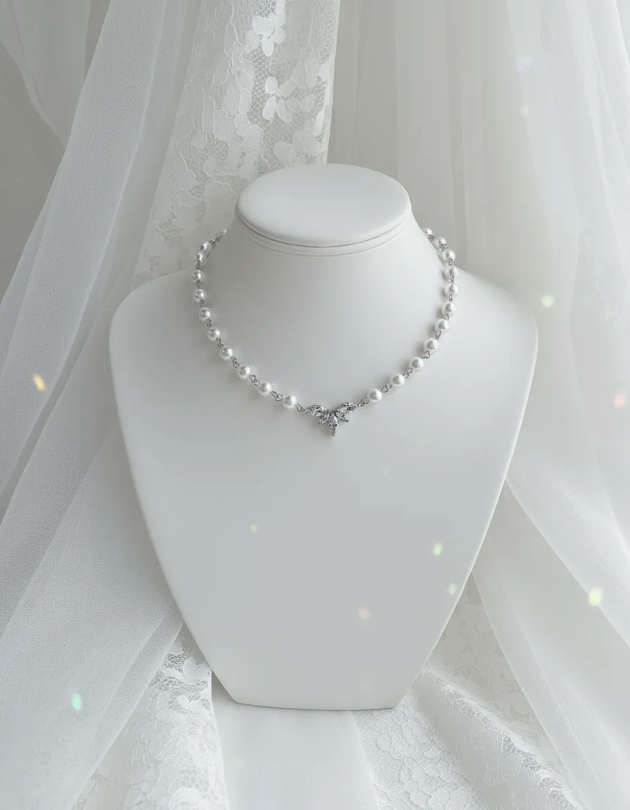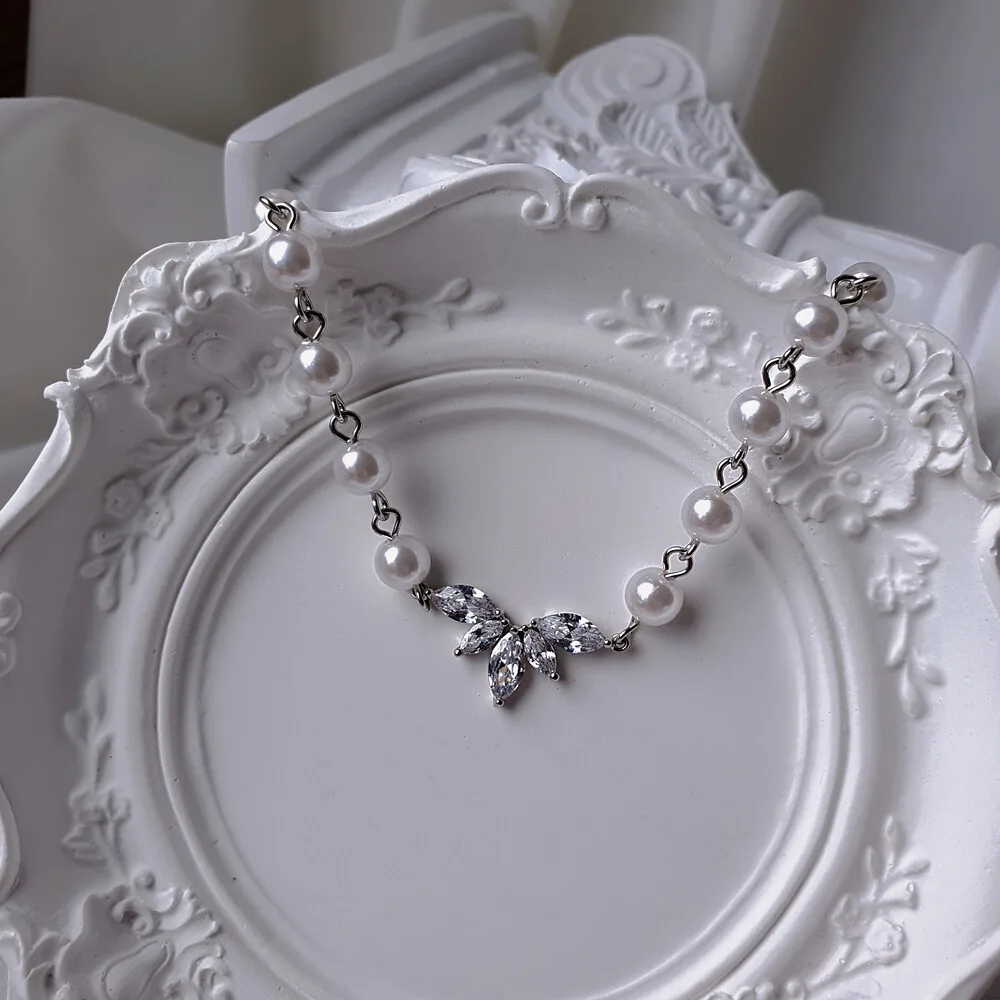 Exquisitely crafted with cubic zirconia crystals, this pearl choker necklace features a high-quality connector shaped like angel wings, creating a luxurious and elegant aesthetic.
