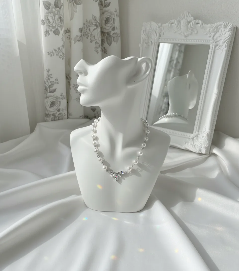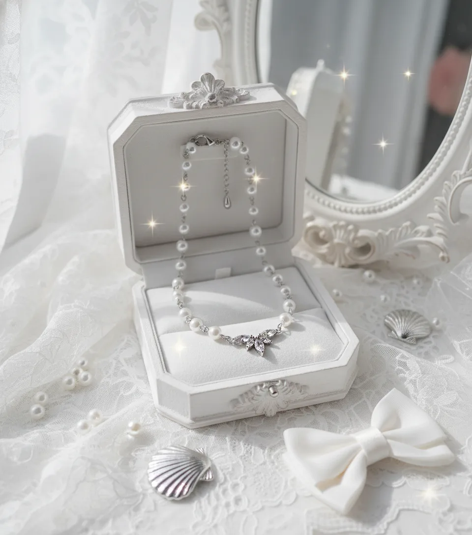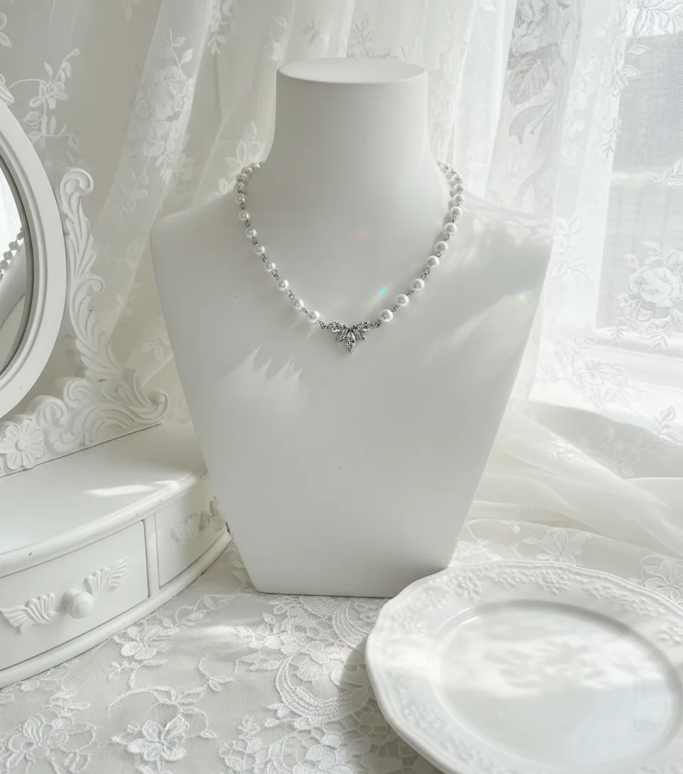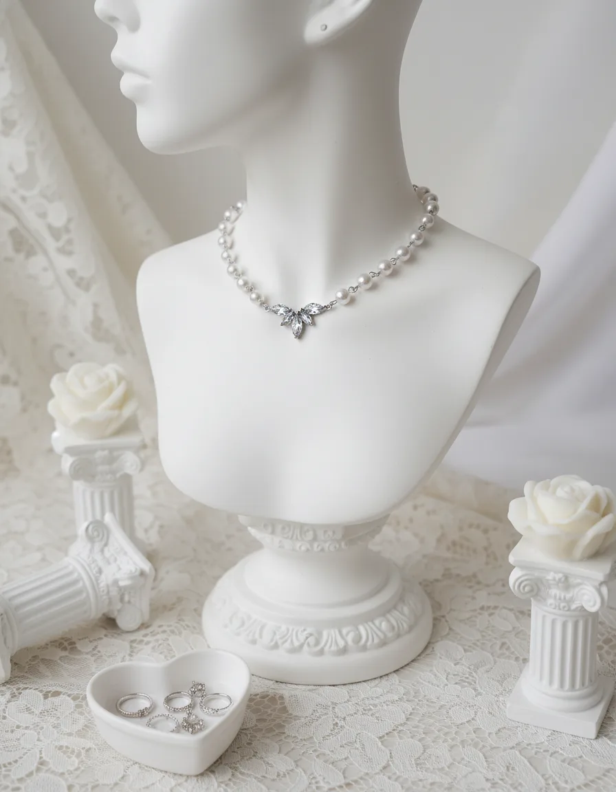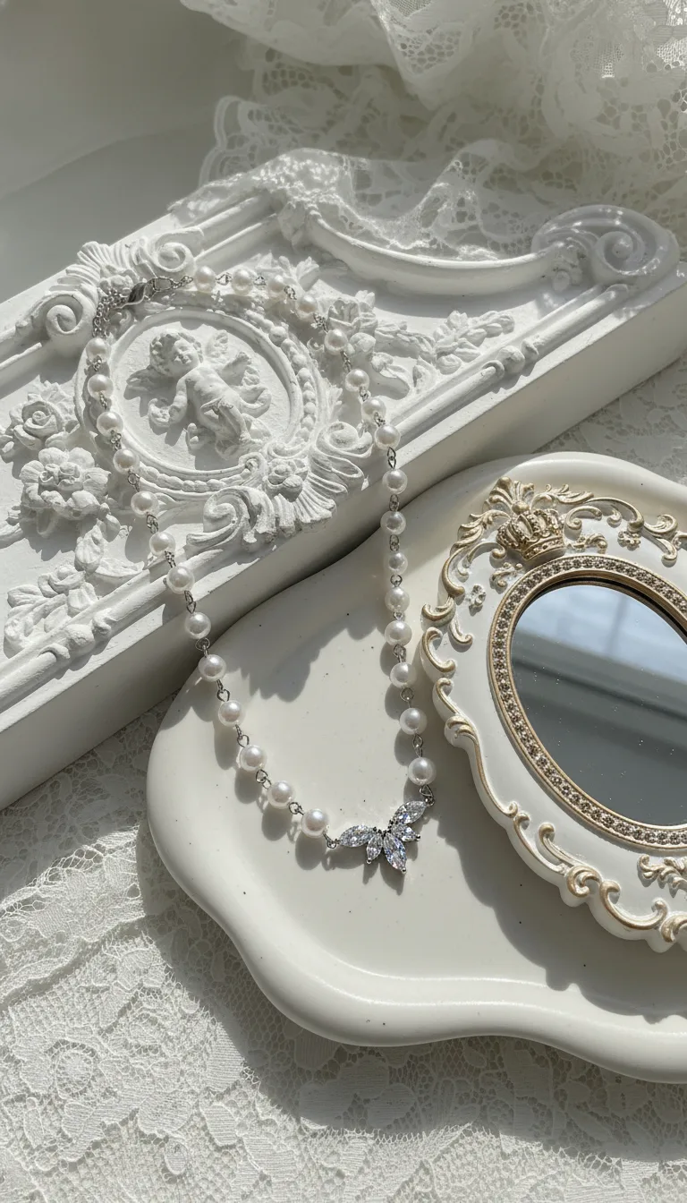 Exquisitely crafted with cubic zirconia crystals, this pearl choker necklace features a high-quality connector shaped like angel wings, creating a luxurious and elegant aesthetic.