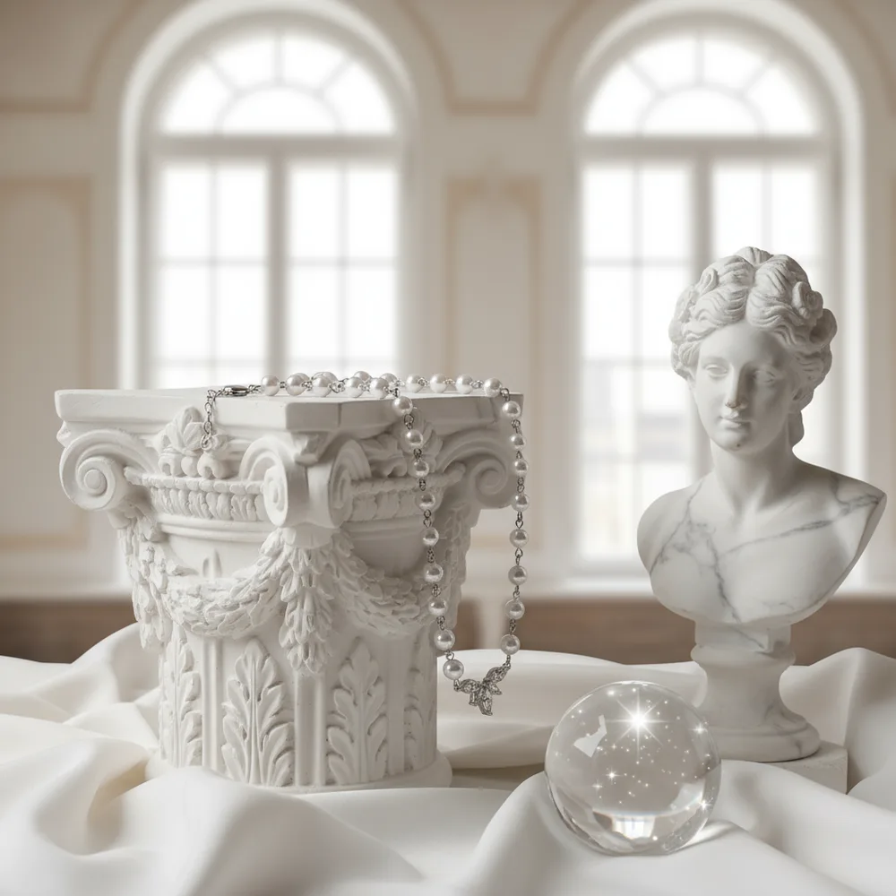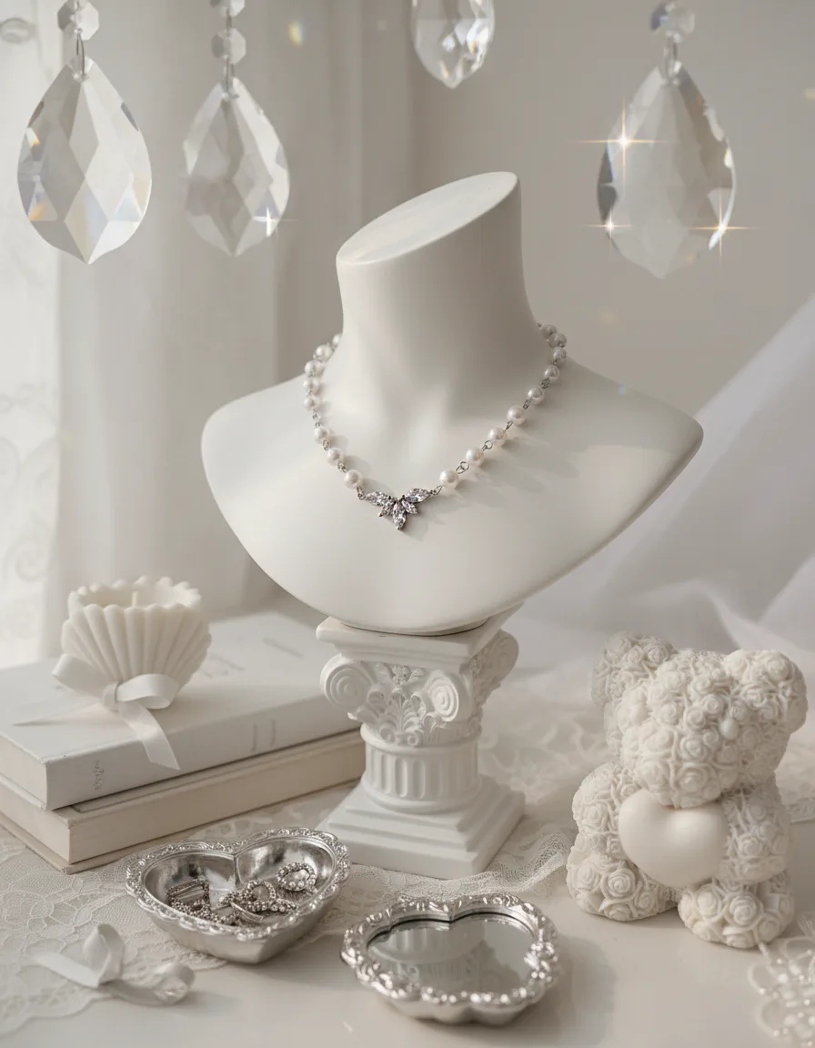 Heavenly Crystal Pearl Choker Necklace - Silver Color