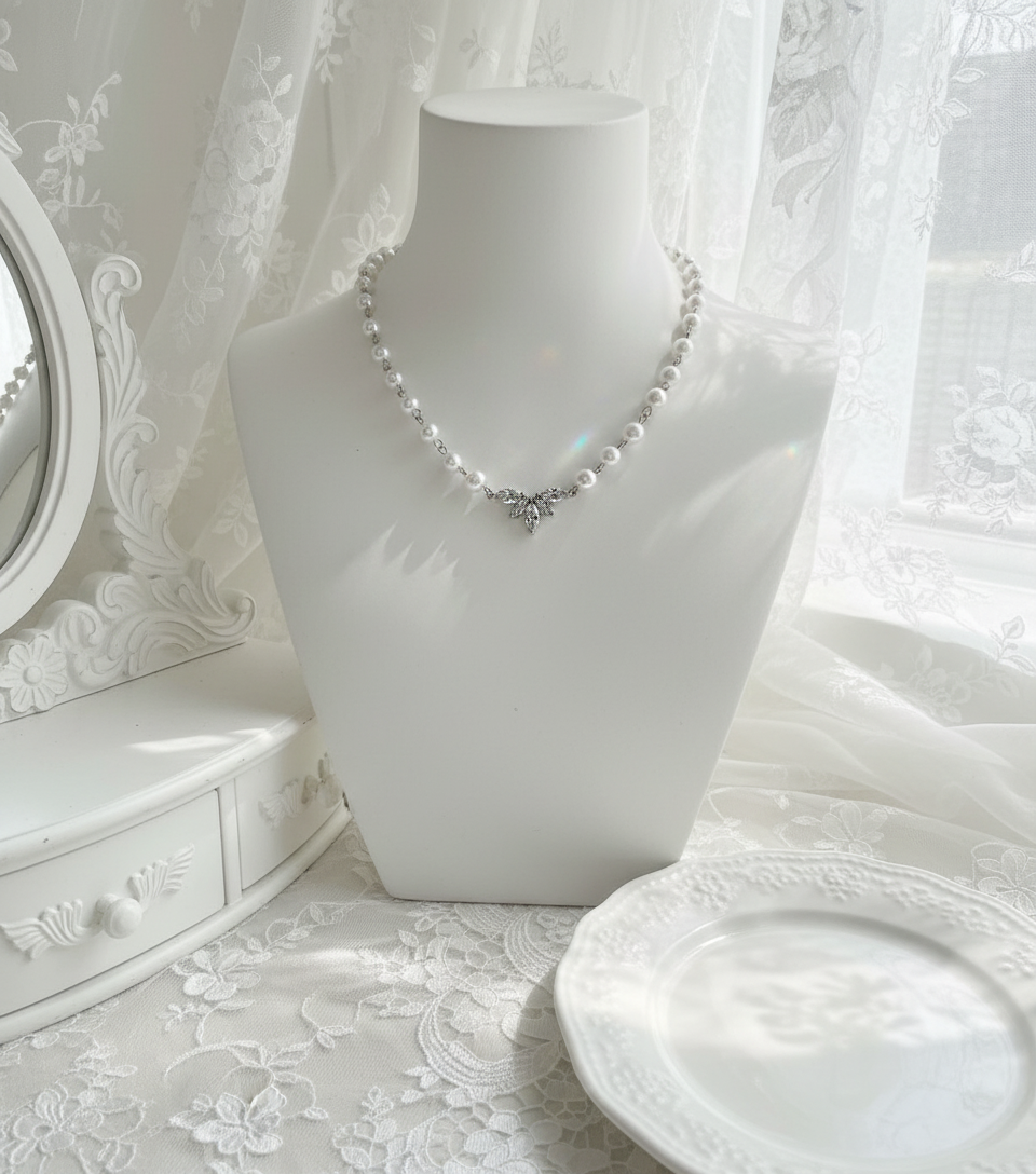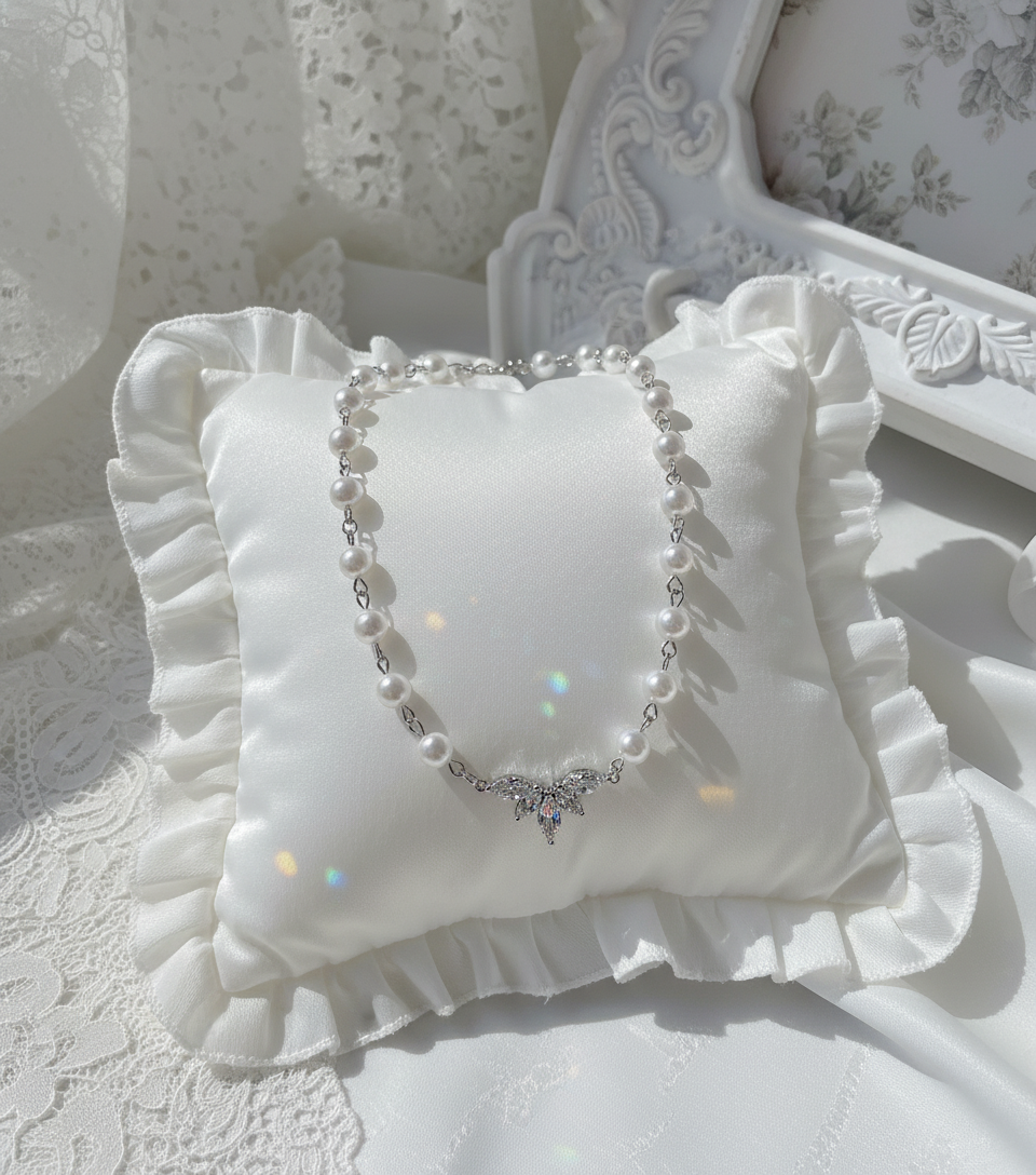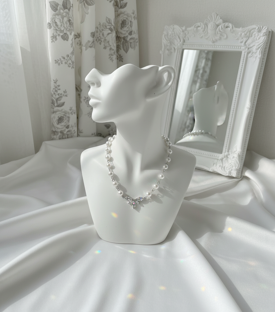 [Jo Yuri Necklace] Heavenly Crystal Pearl Choker Necklace - Silver Color