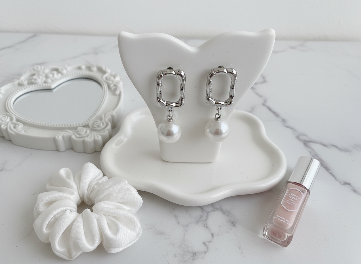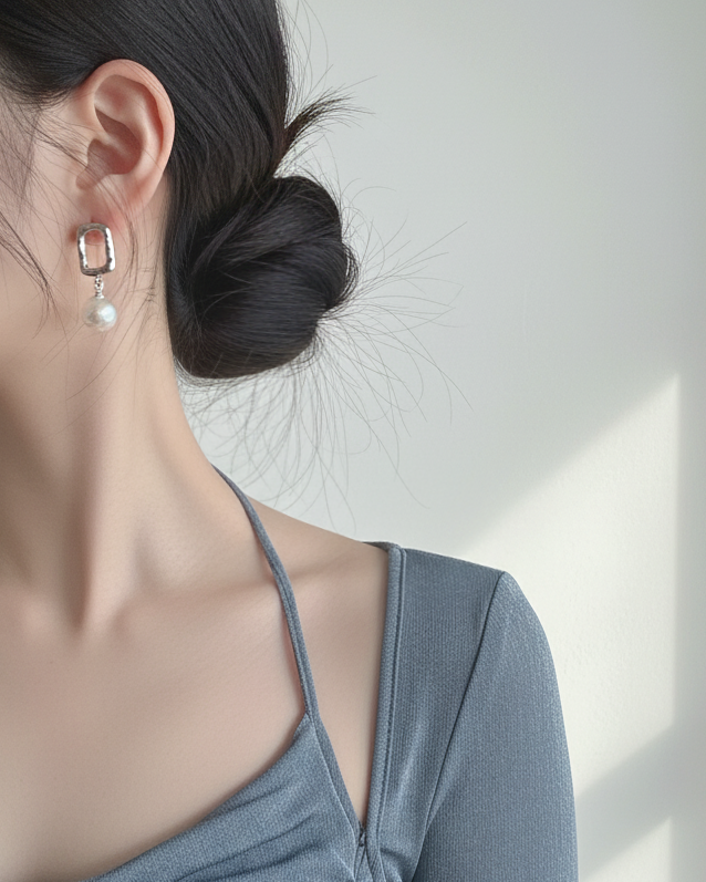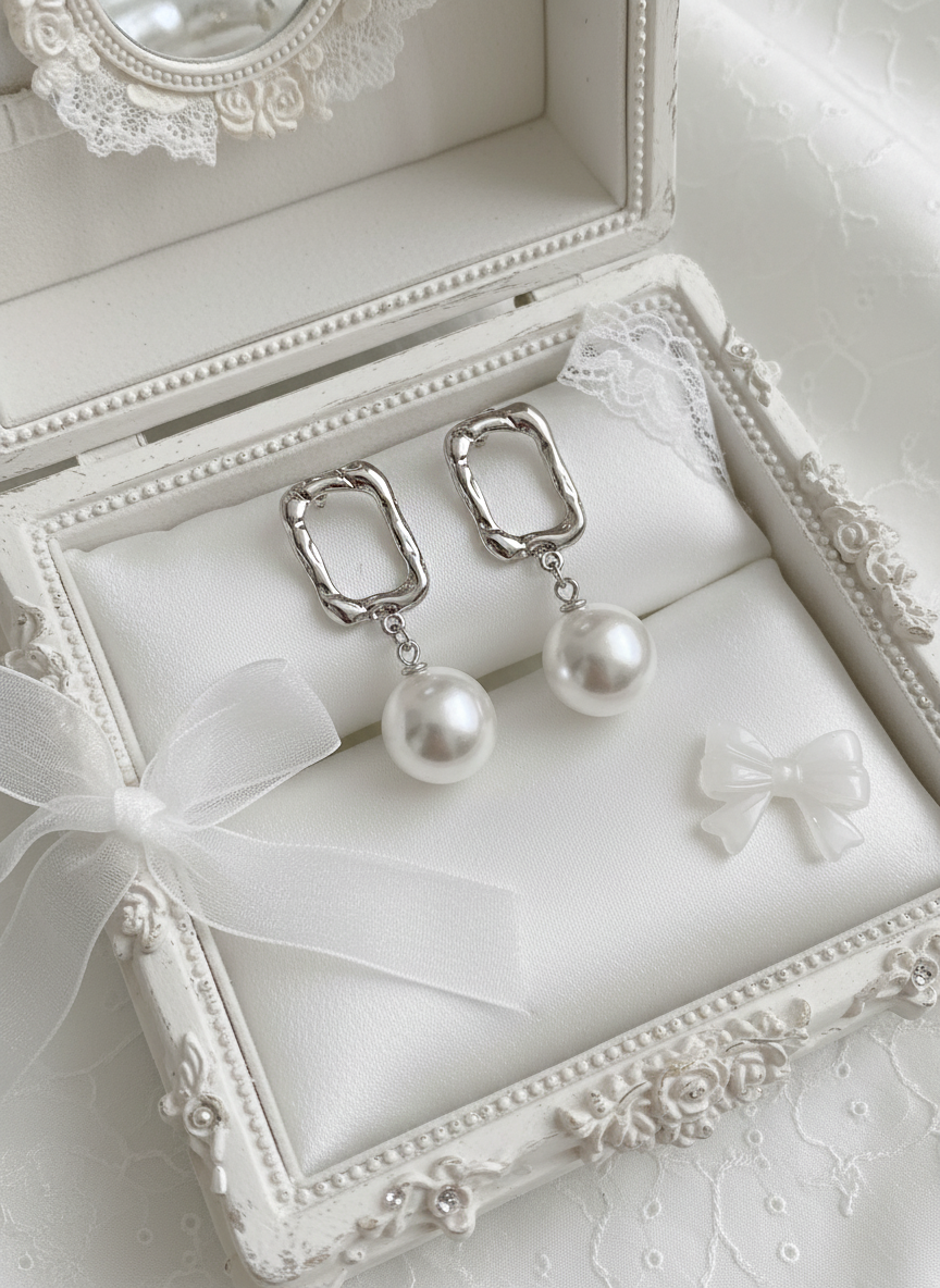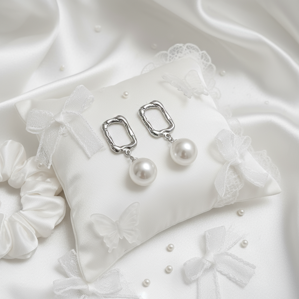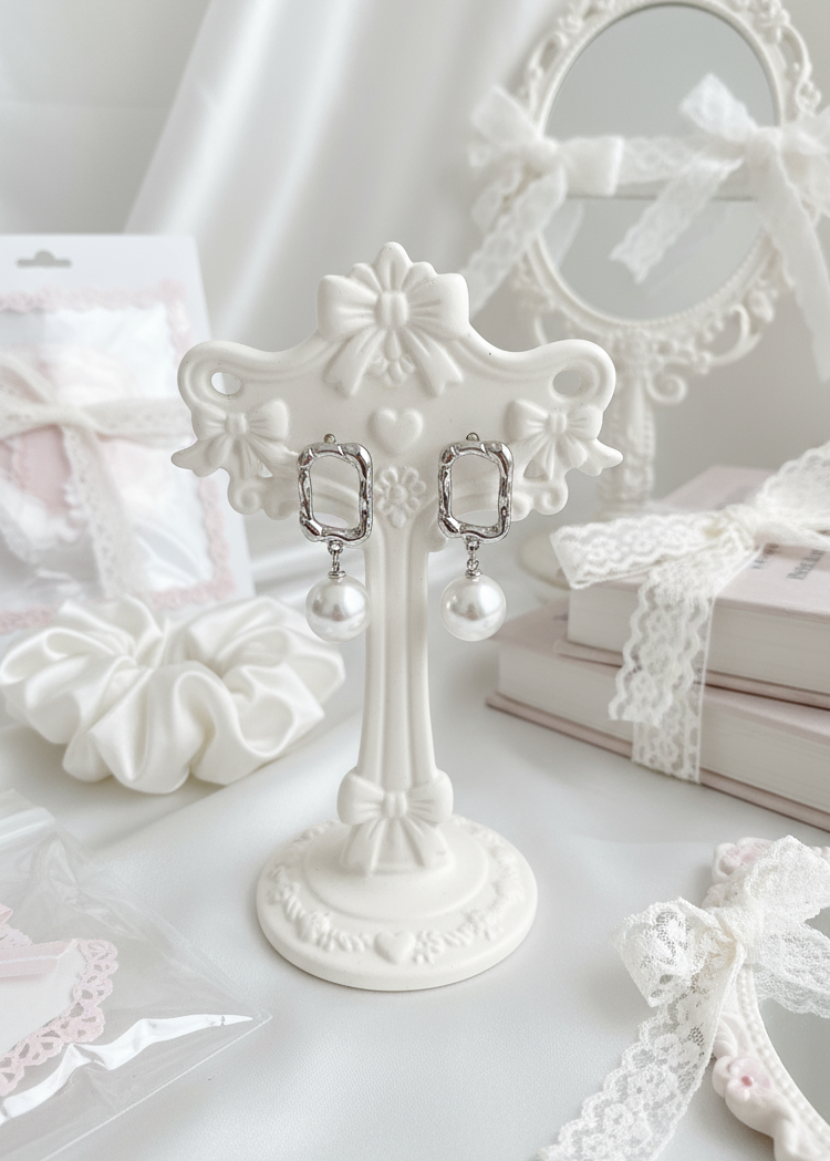 ⦁ Material: White-gold plating, Alloy, Titanium pin, Acrylic pearl, etc