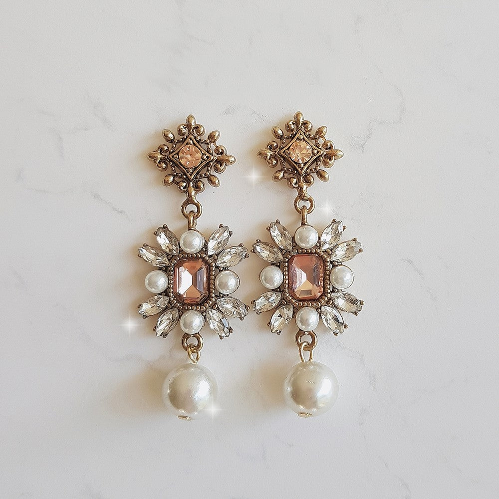 Antique and elegant bold earrings that is classy as Queen Elizabeth. The baroque style vintage pendants and pearl drops are classy and unique.
