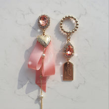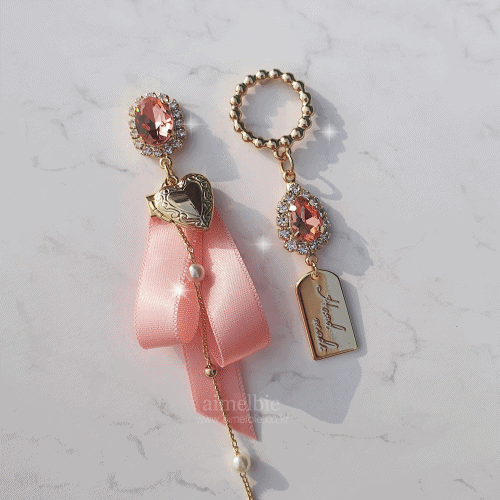 An adorable pair of peachpink ribbon earrings designed by aimelbie with a lovely preppy style vibe. Try matching these earrings with a denim jacket or casual colorful dress!